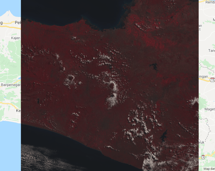 Map.addLayer(clipped, visParams, 'Infrared vegetation composite 543');