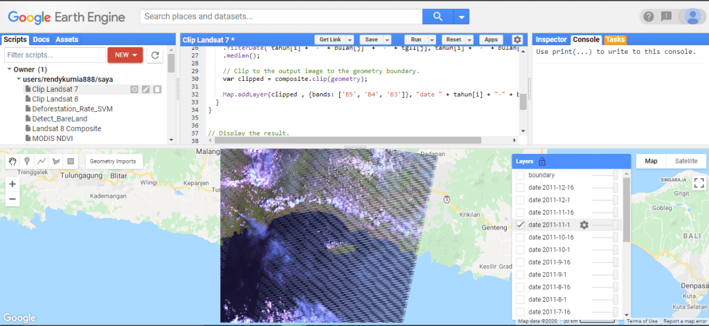 Map.addLayer(clipped , {bands: ['B5', 'B4', 'B3']}, "date " + tahun[i] + "-" + bulan[j] + "-" + tgl1[j], false );