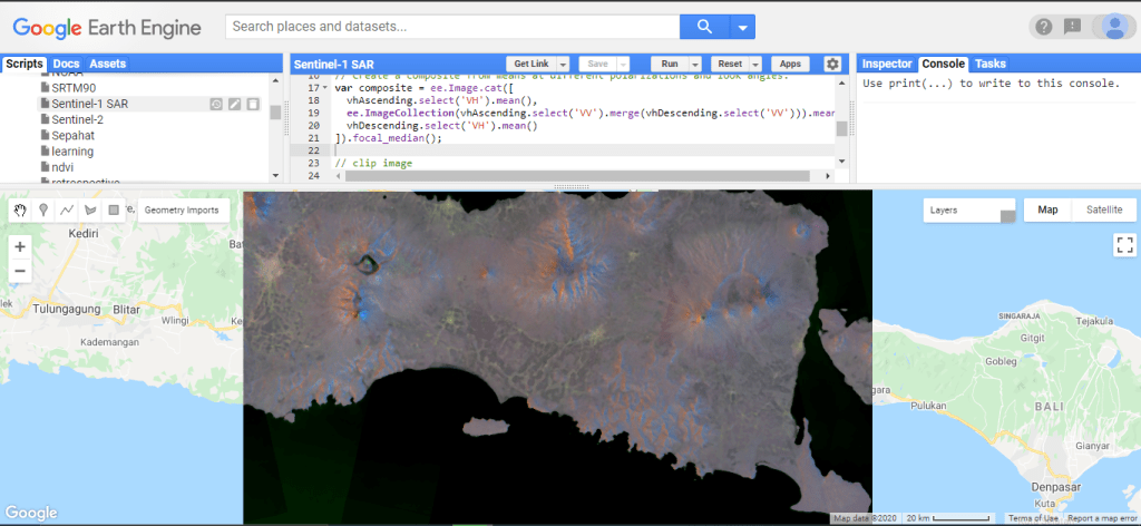 Map.addLayer(clipped, {min: [-25, -20, -25], max: [0, 10, 0]}, 'local');