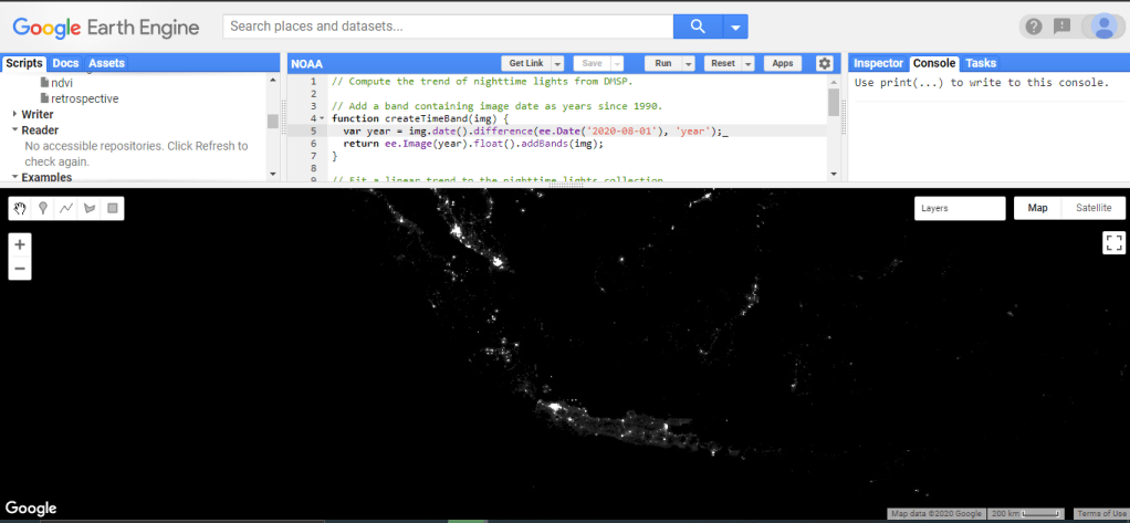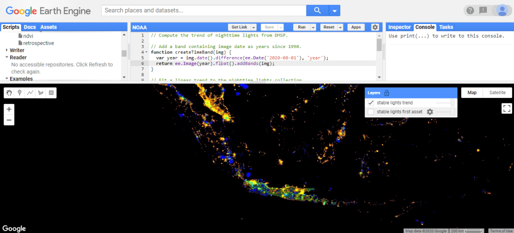 Map.addLayer(composite, {min: [-25, -20, -25], max: [0, 10, 0]}, 'global', false);