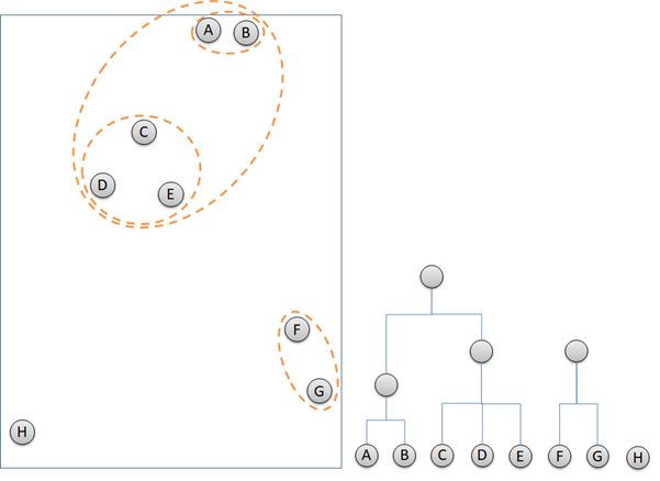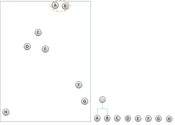 Hierarchical clustering is an unsupervised machine learning that identify closest cluster and group them together. Basic of Machine Learning article can be found here. Hierarchical clustering works with only 2 steps repeatedly. Firstly, detect 2 or more closest points or clusters. Secondly, group them together. The next steps are the iteration of the first two steps until all of the data points are grouped in clusters. The illustration below describes how hierarchical clustering groups data points and build dendrogram at the same time.