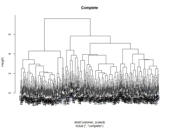 Cluster_complete <- hclust(dist(Customer_scaled), method = "complete")