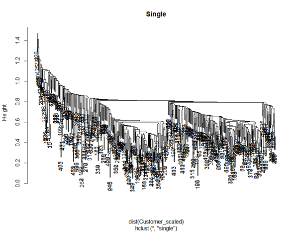 Cluster_single <- hclust(dist(Customer_scaled), method = "single")