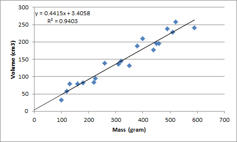 | Mass (g) | Volume (cm3) |