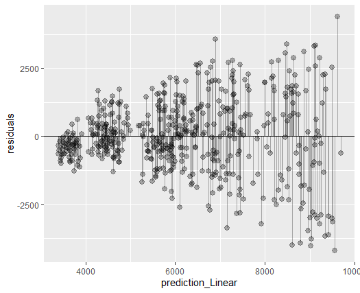 geom_pointrange(aes(ymin = 0, ymax = residuals), alpha = 0.3) +